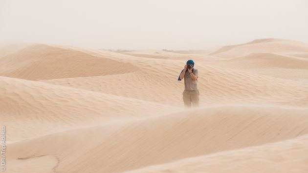 Des escales dans les oasis, on garde en mémoire la luxuriance de la végétation et le contraste avec le silence des étendues pierreuses et sableuses. Des couleurs et un relief montagneux bas nous attendent sur la chaîne du Dahar, avec un passage inoubliable dans une des parties en erg du Sahara tunisien.